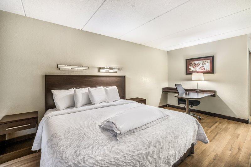 The Red Roof Inn PLUS+ Boston - Woburn/ Burlington offers a variety of room types to suit your needs. From spacious superior king rooms to deluxe rooms with two double beds, there's something for everyone. Whether you're traveling solo or with a group, you'll find a comfortable and smoke-free room to unwind in after a long day of exploring Woburn. Each room is equipped with modern amenities, including complimentary Wi-Fi and free toiletries in the private bathroom.